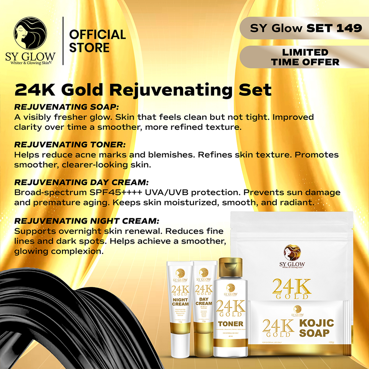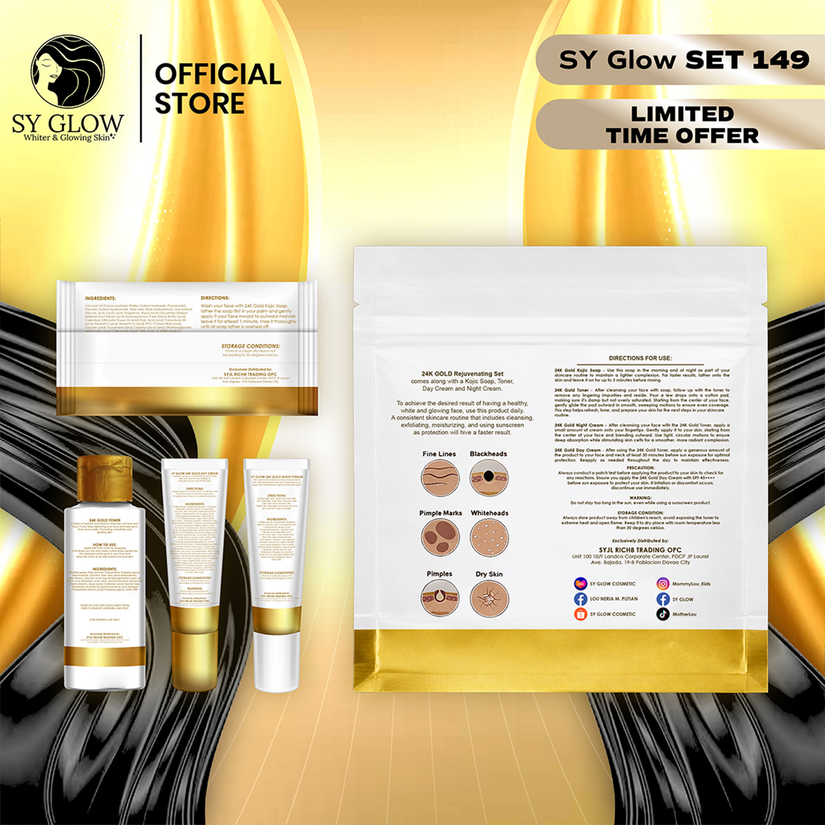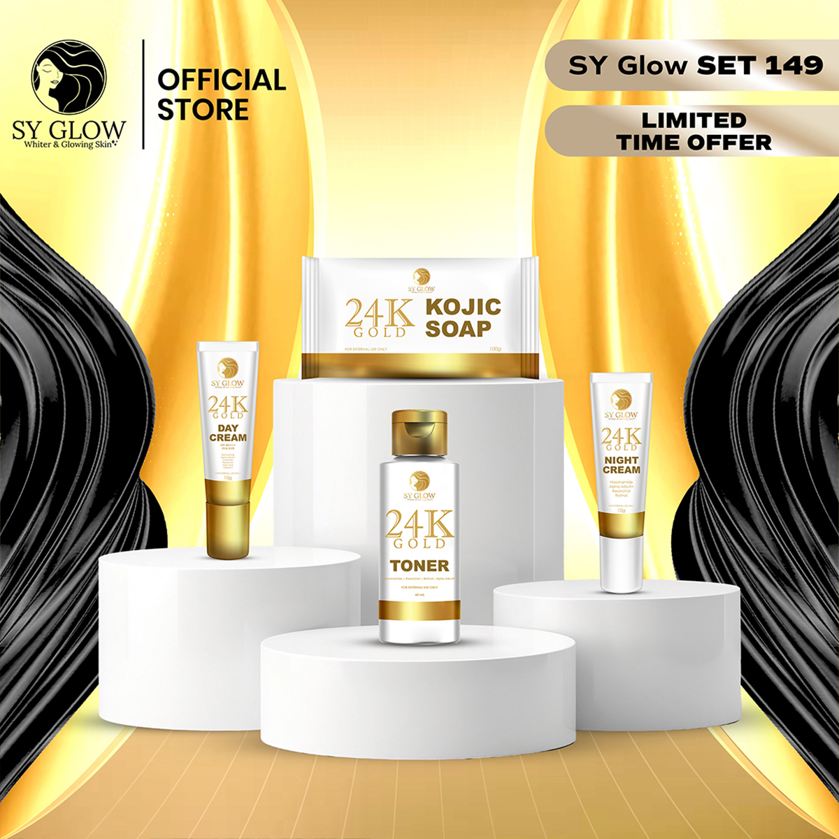 SY Glow Whitening Beauty Set 149 - 24k Gold Resorcinol Rejuvenation Set | Exfoliating | Skin Hydration | Anti Wrinkles | Smooth & Glowing Skin | Minimize Pores | Glass Skin Effect